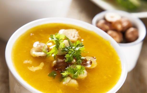 Juste avant de servir, mettez le velouté de potiron à réchauffer sur feu très doux pendant 5 minutes. Répartissez la soupe dans les bols. Ajoutez une cuillère à soupe de crème fouettée aux noisettes. Décorez d'un cracker. Et régalez vous !